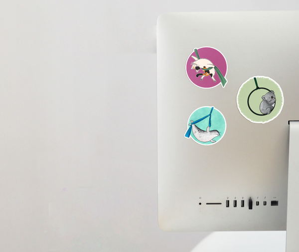 Our stickers feature cute and funny aerial circus or pole dance drawings. These stickers are perfect for those who love the circus and want to add a touch of whimsiness to their belongings. The designs are playful and colorful, making them great for kids and adults alike. The stickers are made of high-quality vinyl and are durable, so they can be placed on water bottles, laptops, journals, and more. They are also easy to apply and remove, leaving no leftover paper mess when you peel them off! Overall, these stickers are a fun and unique way to add a touch of personality to any item.