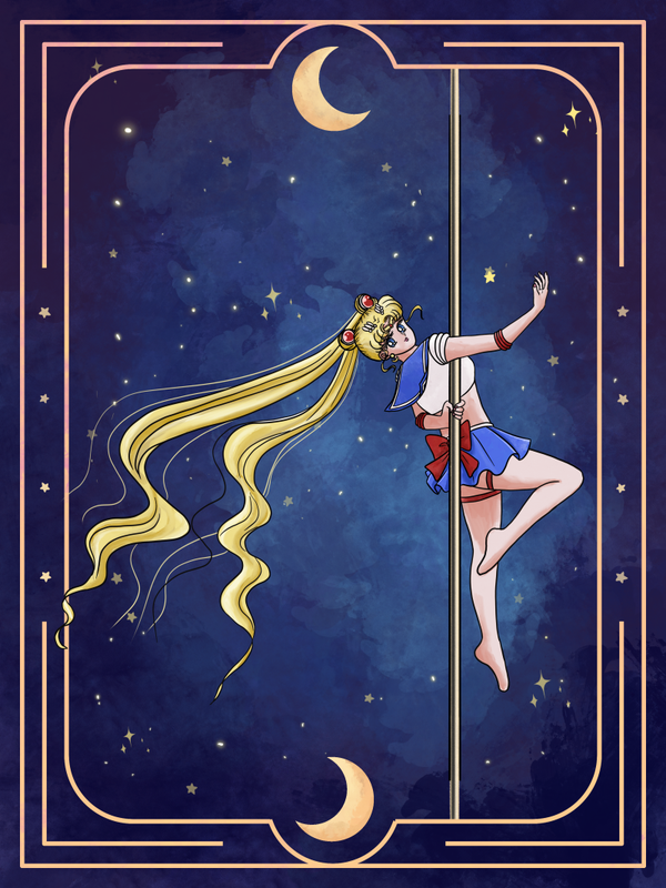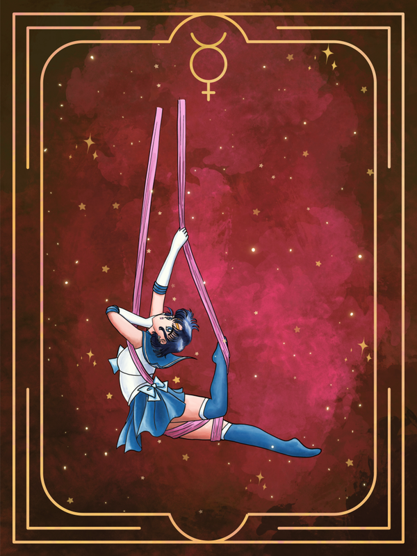 Introducing the Aerial Sailor Moon Collection: a stunning series of art prints featuring the beloved Sailor Guardians—Sailor Moon, Mercury, Mars, Jupiter, and Venus—reimagined as aerialists.